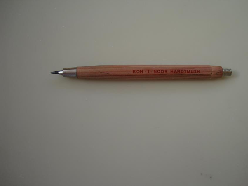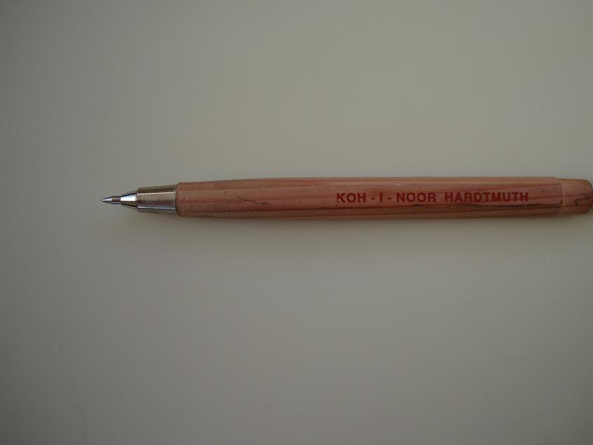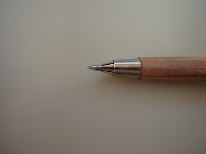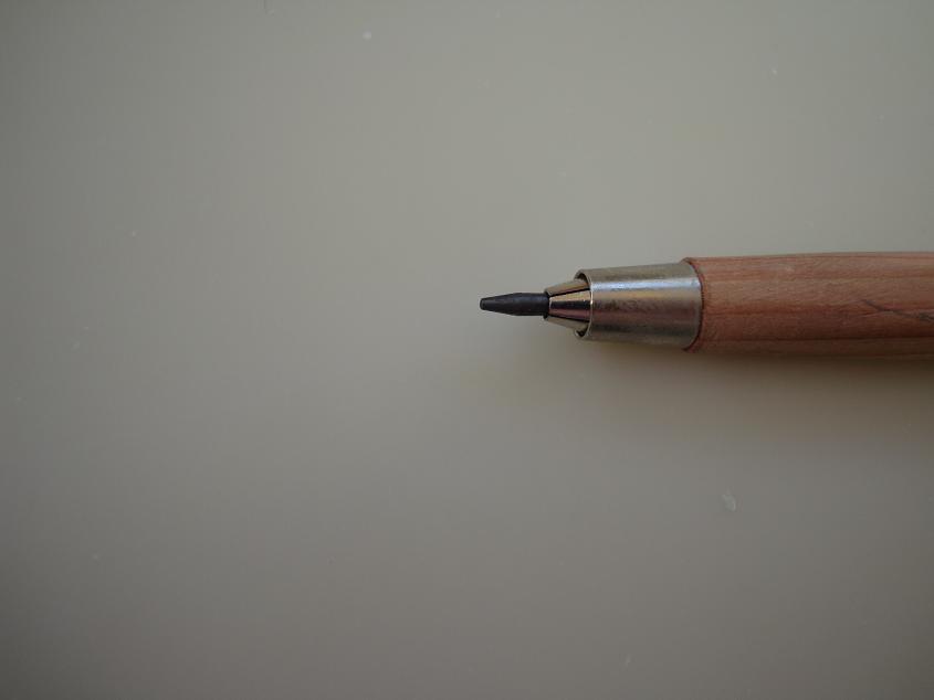 ただ、このホルダーの特徴は、使用する芯が2.5mmと、日本でほぼ入手不可能な芯の為、現在使っている三菱のユニーの芯を入れるとご覧の通り。↓