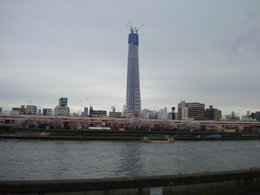 桜と屋形船とスカイツリー。