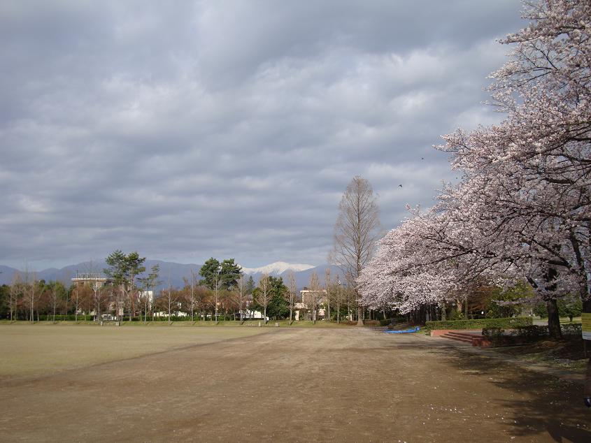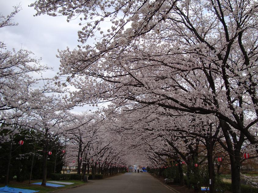 ここは、甲府の南側にある小瀬スポーツ公園内のソメイヨシノの並木です。