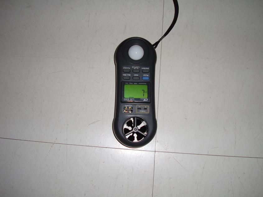 これは、室内の最低照度が1lx(ルクス)(蛍光灯の場合は2lx)以上確保されているか確認するもので、下の写真のような照度計を持って部屋の中をグルグル廻って検査するのです。