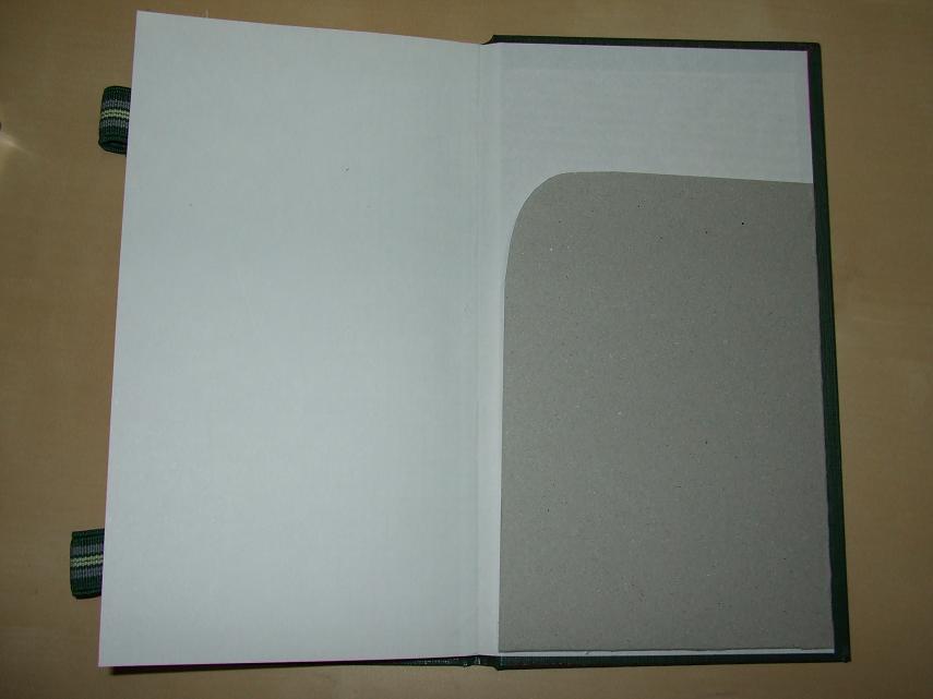 巻末にボール紙でポケットを作って、速記した資料などここに挟み込んでしまっておきます。