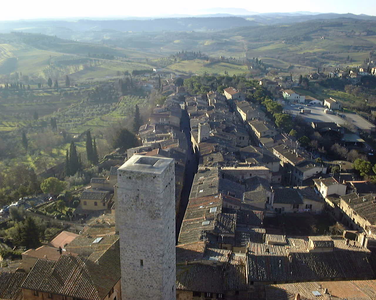 サンジェミニャーノの塔の上から撮った写真なのですけど、眼下にオリーブ畑や葡萄畑が広がってるのがお分かりになりますでしょうか?