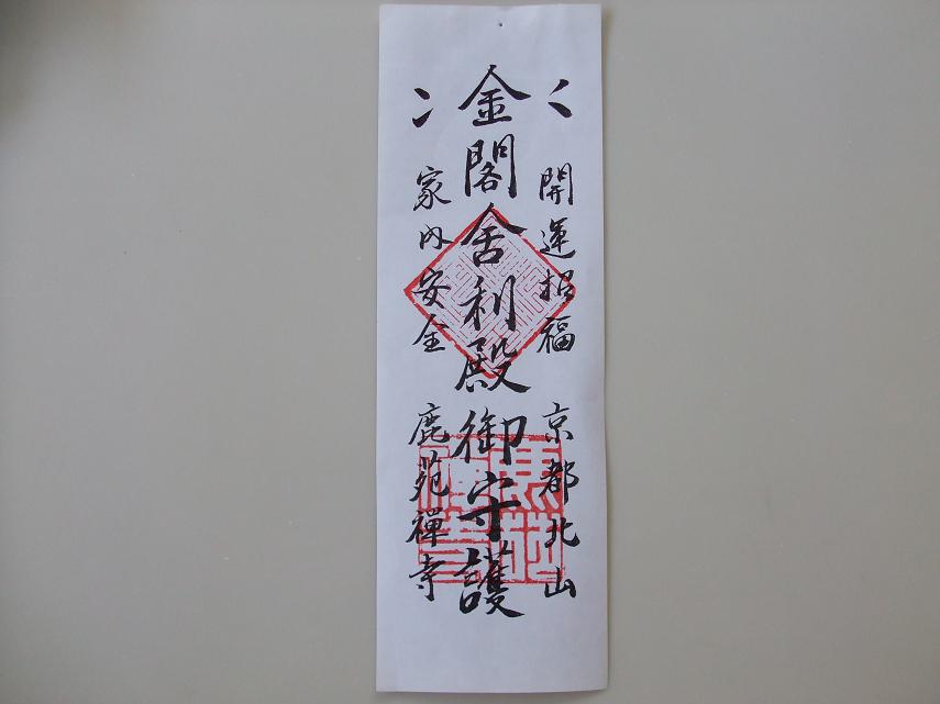 いかれた方はご存知かもしれませんが、これ、京都は金閣寺の入場券なんです。決して御札をあえて購入したわけではありません。