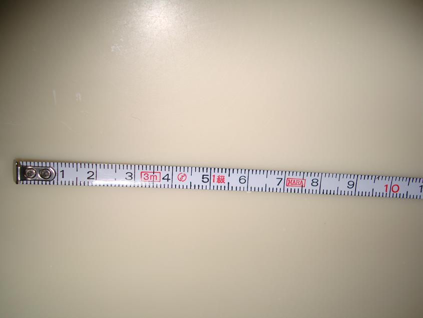 色がくすんできてはいるのですが、いつもカバンの中に忍ばせているメジャー(コンベックス)です。