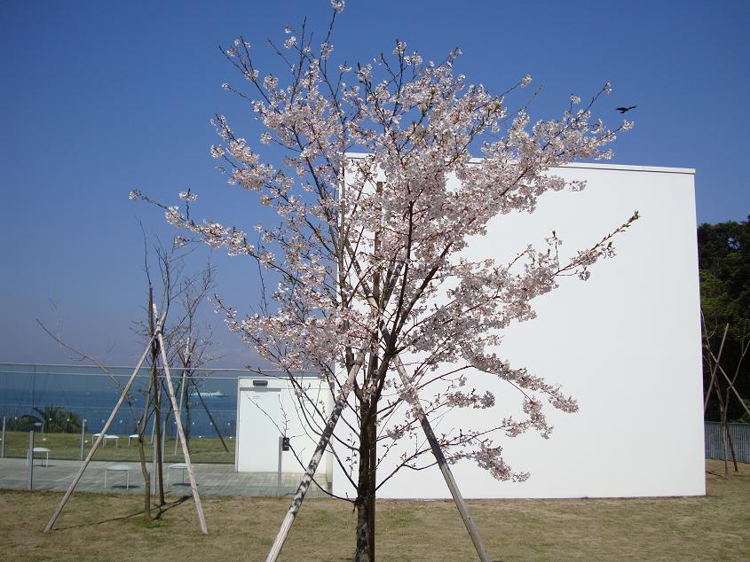横須賀の三笠公園近くの桜並木と横須賀美術館の桜の写真2枚です。