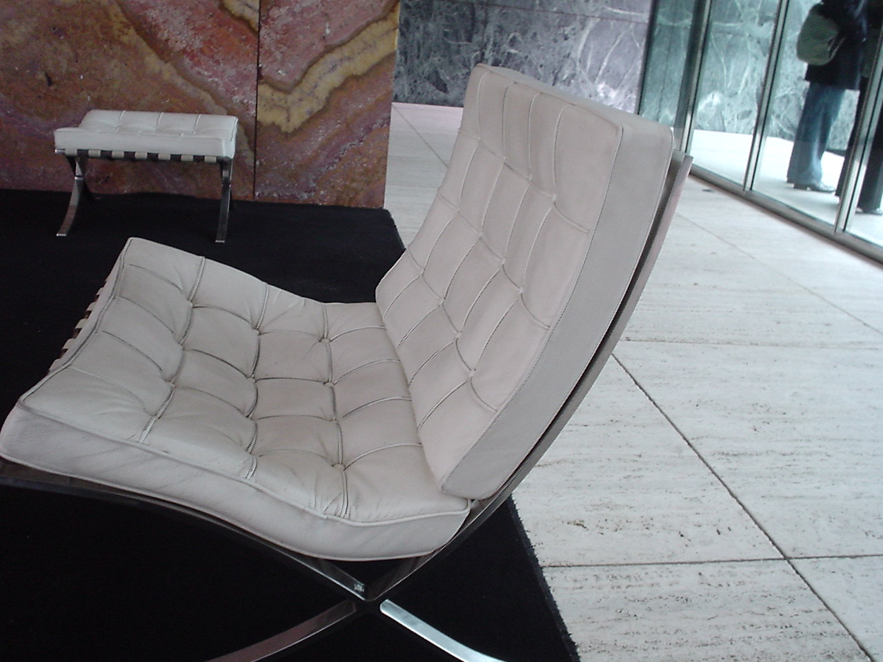 で、この博覧会の際に、ミースが設計した椅子「バルセロナ・チェア」が、写真のものです。