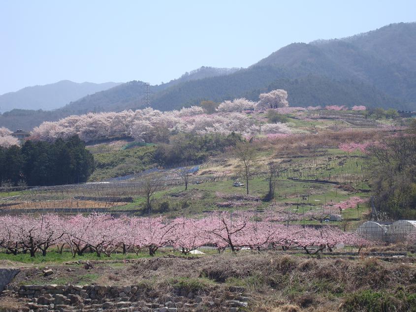 この時期の愛でる桃源郷、週末は山梨にお越しくださいね。。