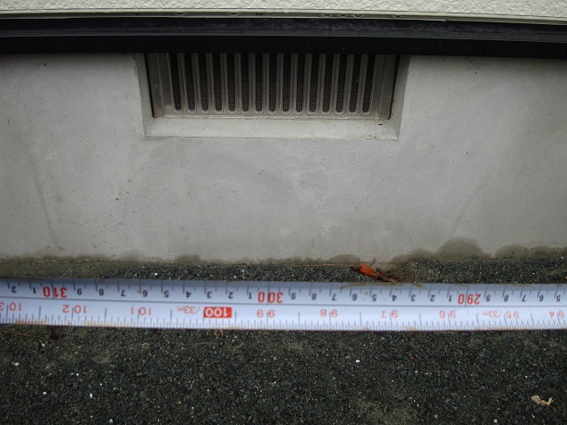 床下に断熱材を敷きこんでいる場合、基礎には通常換気口を設けることになっていまして、大きさは10cmx30cm=300cm2以上を基礎外周部に配置しています。