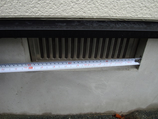 最近では、土台と基礎の間にパッキン材をかまし、こちらから換気を取るようにしている建物が多くなりましたが、既存住宅では、やはり上記の基礎換気口の方が多く、