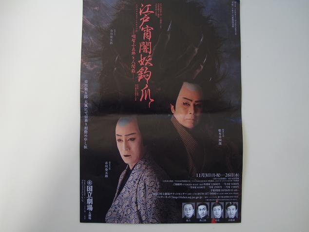 今日は、先日「ほん」のコーナーで紹介した、江戸川乱歩の「人間豹」を歌舞伎化した~江戸宵闇妖鉤爪~の観てきましたので、こちらのお話をしたいと思います。